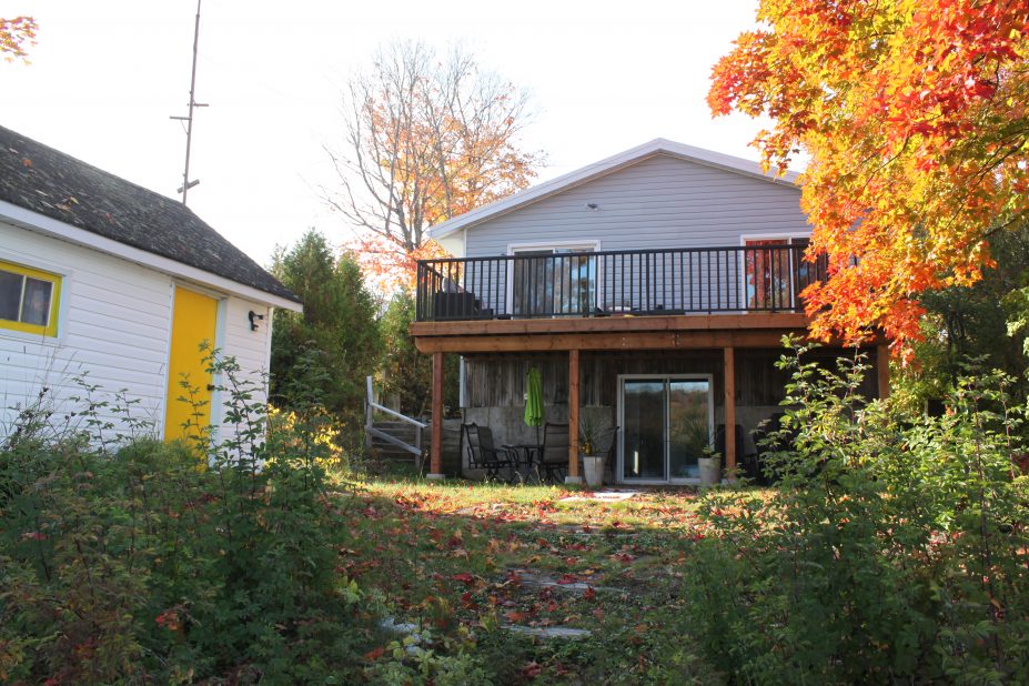 The property is accessed via a gravel road, about 300 metres from a paved secondary highway. Snow clearing and grading is done by neighbours. During dry summer months, the road area can be a bit dusty. During winter months, if you love snow we usually get lots of it here – lake effect snow off Lake Superior. When the snow flies, there may be a few inches, or up to a foot or more of snow that might fall in a day or overnight. Great for skiers at the the Searchmont Ski Hill about 20 minutes away. The road usually gets cleared within a few hours after a good snowfall. The driveway on the property can accommodate two or three cars easily, small to midsized vans, or truck with a large snowmobile trailer.