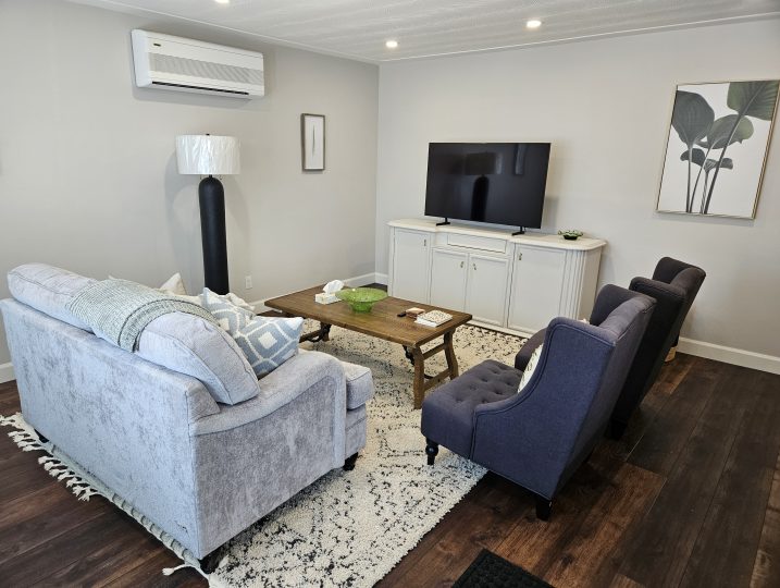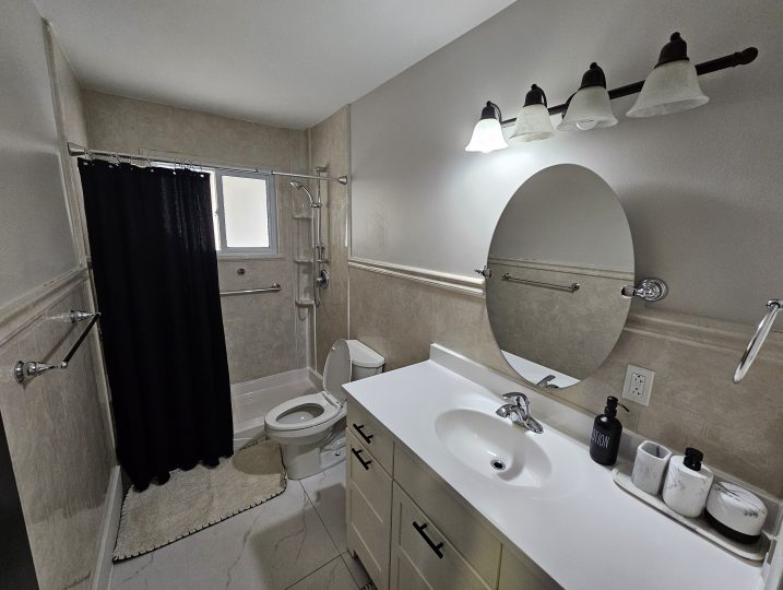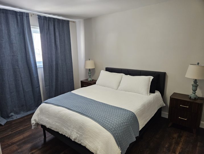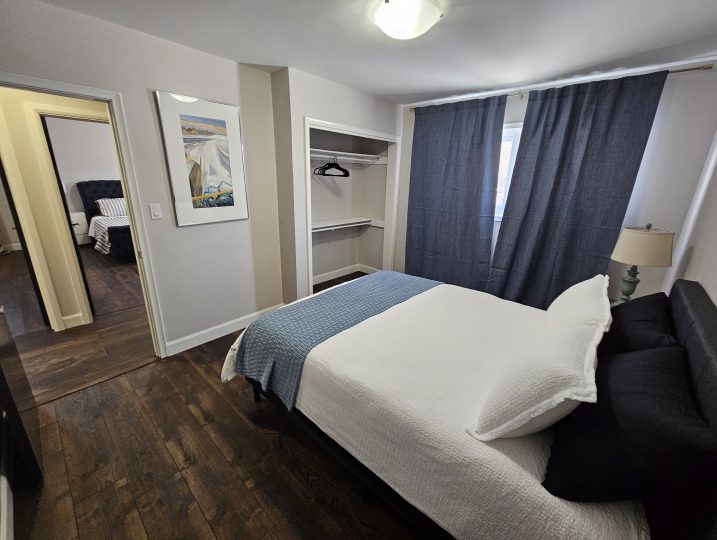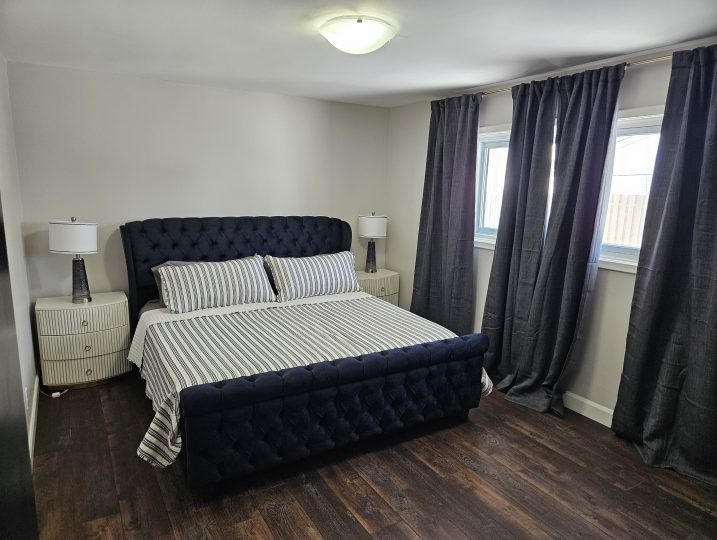 This newly renovated home is nicely decorated and has 3 bedrooms on the main floor, a well equipped kitchen that includes an island for dining, and a nice living room area with a flat screen TV. This home has parking for up to 4 vehicles and has easy access to local city transportation. The master bedroom features a king sized bed, and the other two bedrooms each have a Queen sized bed. Each room also has a large closet.