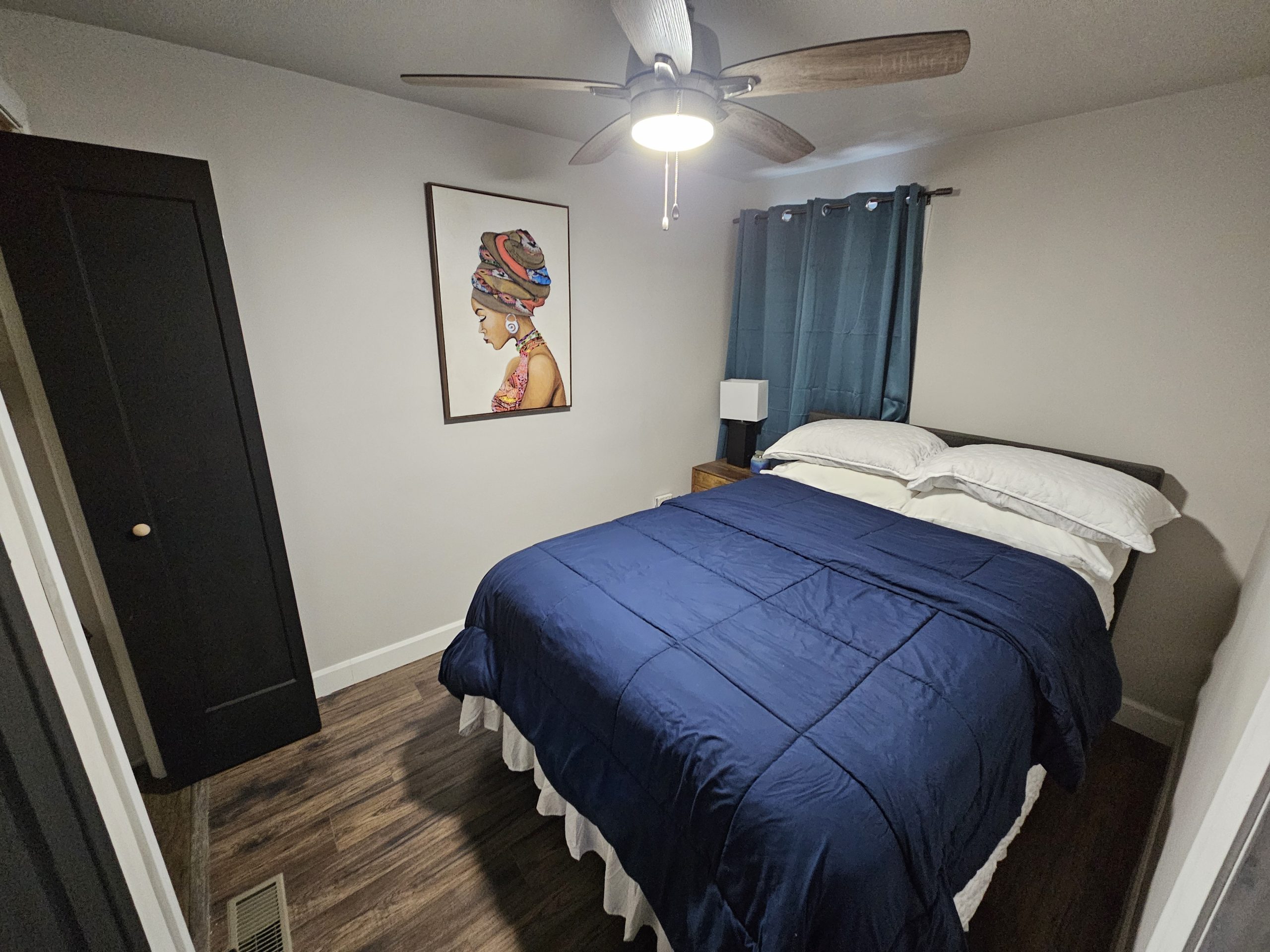 - Amenities: Air Conditioning, Deck, Dining area, Electric Fireplace, Flat-screen TV, Free parking, Free WiFi, Fully Equipped Kitchen, Iron and Ironing Board, Patio, Propane Grill (winter excluded)